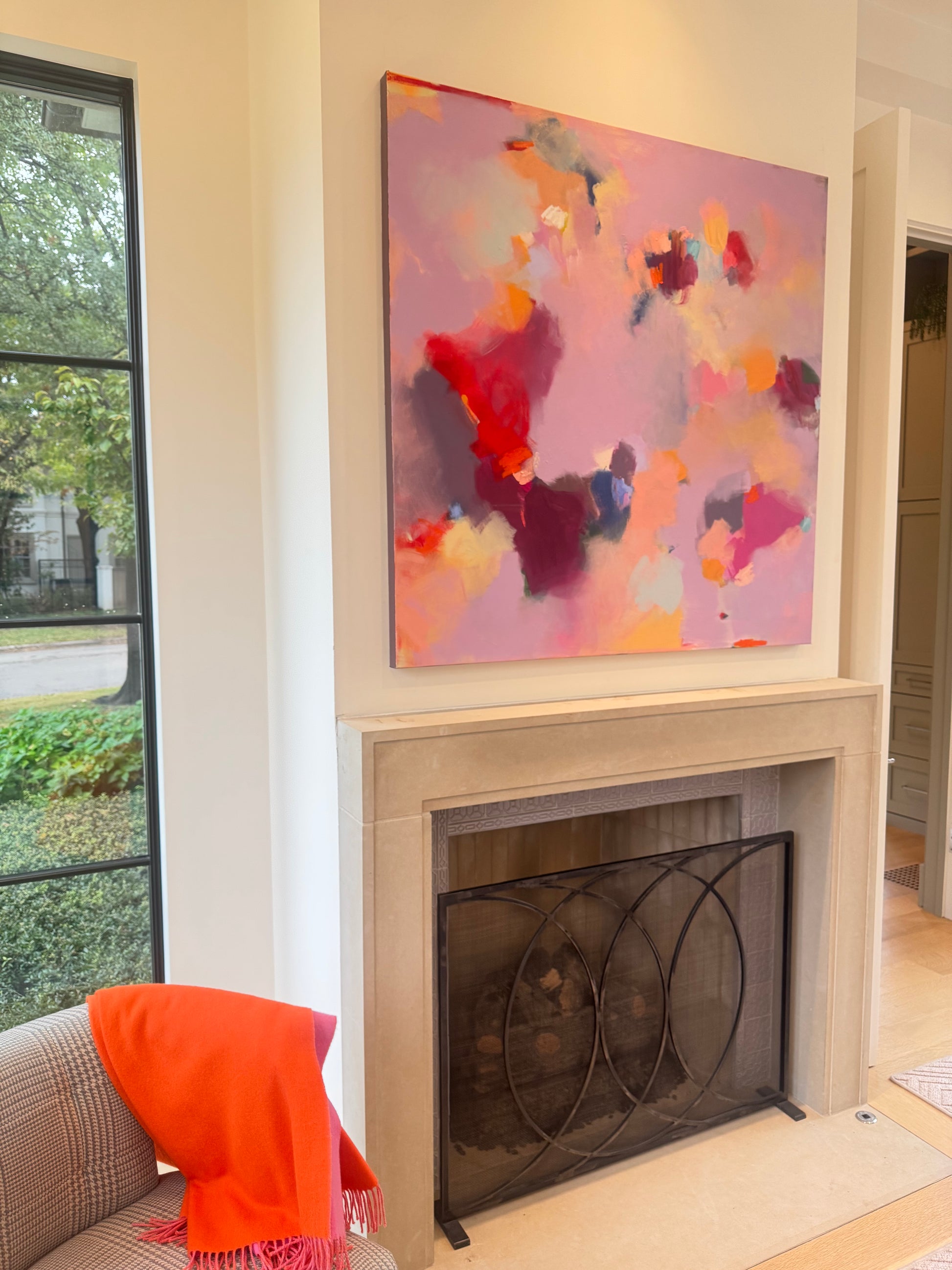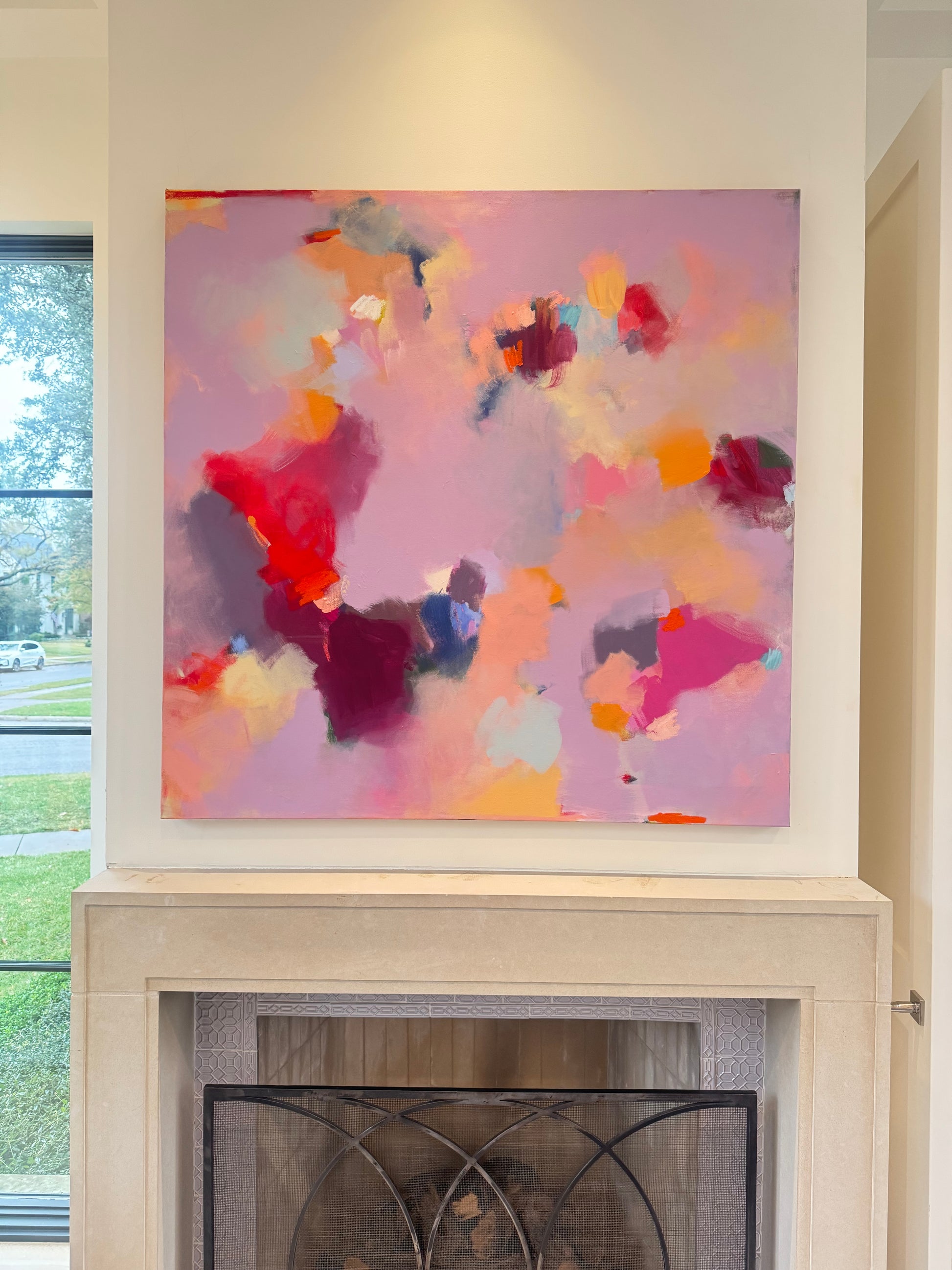 This 48 × 48 original abstract painting is a one-of-a-kind work, entirely hand-painted by artist Chrissy Collins. Created on canvas using layered mixed-media techniques, the piece explores movement, texture, and expressive color in a way that feels both bold and balanced.