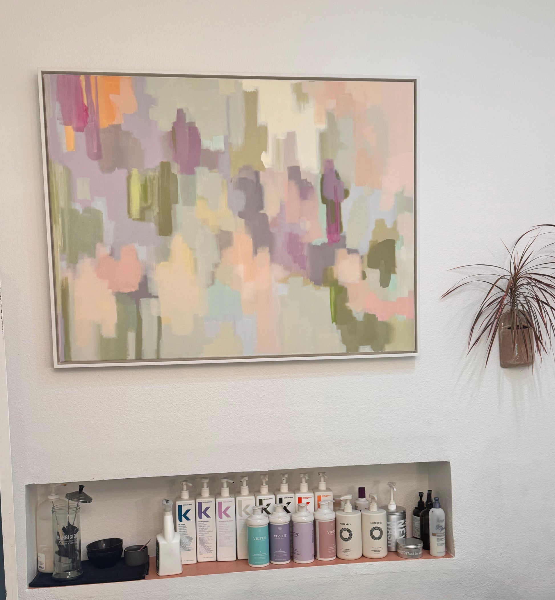 This 37.5 × 49.5 in original abstract painting is a one-of-a-kind work, entirely hand-painted by artist Chrissy Collins. Created on canvas using layered mixed-media techniques, the piece explores movement, texture, and expressive color in a way that feels both bold and balanced.